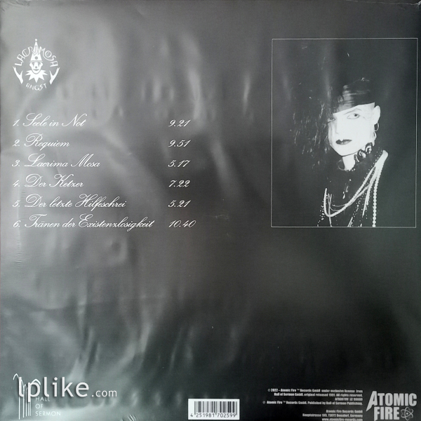 Приобрести музыкальную пластинку Lacrimosa - Angst (LP, Европа) в состоянии Sealed(конверт)/Sealed(винил) можно через сайт нашего интернет-магазина с доставкой по всей России и СНГ. Альбом «Angst» выпущен лейблом Atomic Fire, год выпуска пластинки 2023, производство Europe (Европа). В него вошли такие синглы как: «Requiem», «Tränen Der Existenzlosigkeit», «Lacrima Mosa» и другие.