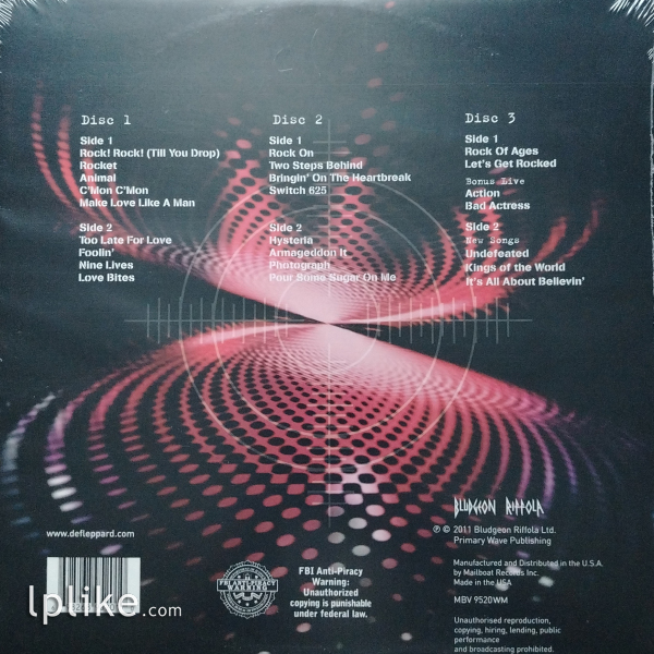 Купить музыкальную пластинку Def Leppard - Mirror Ball - Live & More (3xLP, США) в состоянии Sealed(конверт)/Sealed(винил) можно через сайт нашего интернет-магазина с доставкой по всей России и СНГ. Альбом «Mirror Ball - Live & More» выпущен лейблом Bludgeon Riffola/Mailboat Records, год издания пластинки 2011, производство USA (США). В него вошли такие композиции как:  «Nine Lives», «Make Love Like A Man», «Foolin'» и другие.