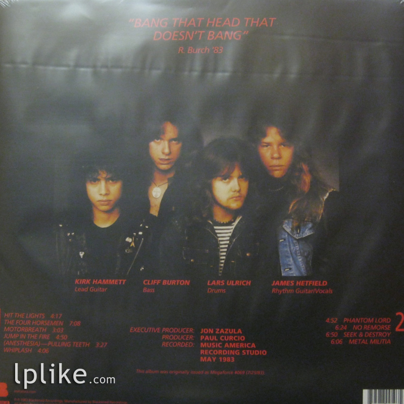 В нашем интернет-магазине музыкальных пластинок lplike.com вы можете купить грампластинку группы(в исполнении) Metallica. Альбом «Kill 'Em All» издан лейблом Blackened, год издания пластинки 2016, производство USA (США). В него вошли такие песни как: «The Four Horsemen», «Phantom Lord», «(Anesthesia)-Pulling Teeth» и другие. Приобрести Metallica - Kill 'Em All (LP, США) в состоянии Sealed(конверт)/Sealed(винил) можно через сайт нашего магазина с доставкой по всей России и СНГ.
